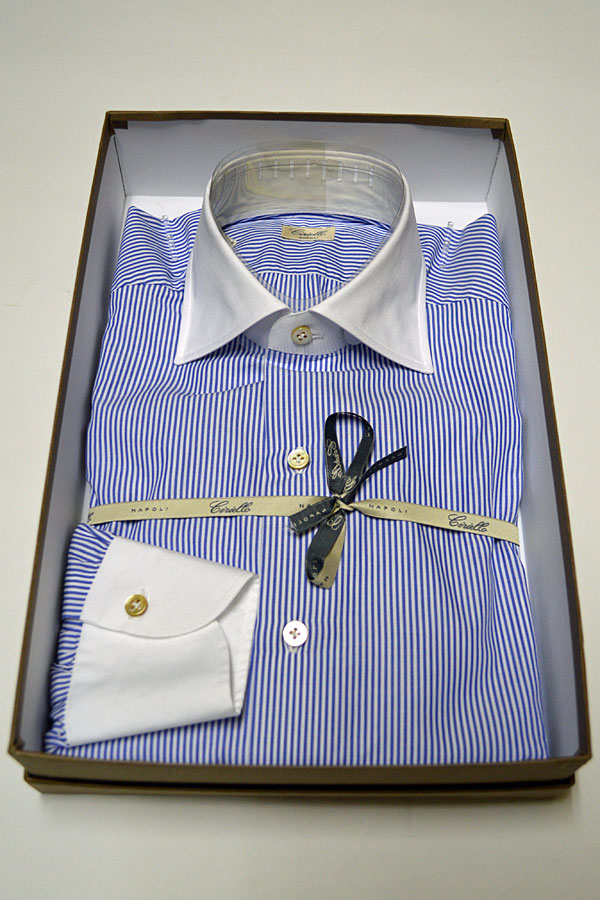 Ciriello チリエッロ ドレスシャツ クレリック ブルーストライプ