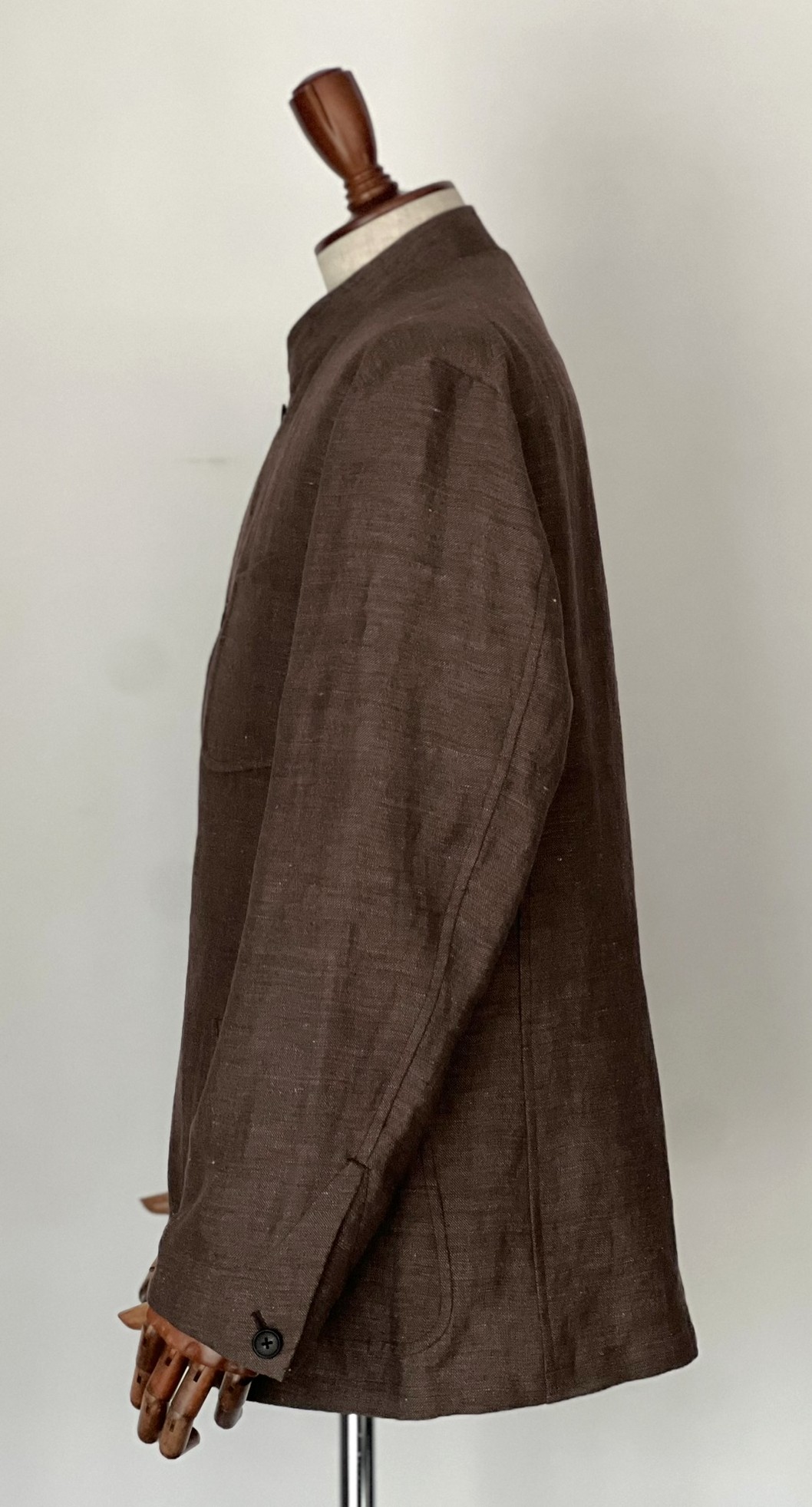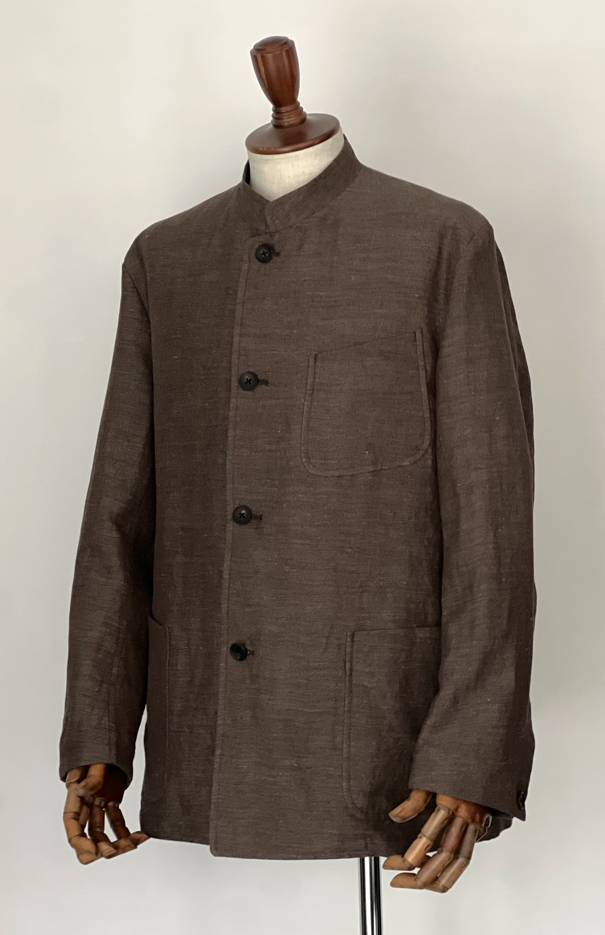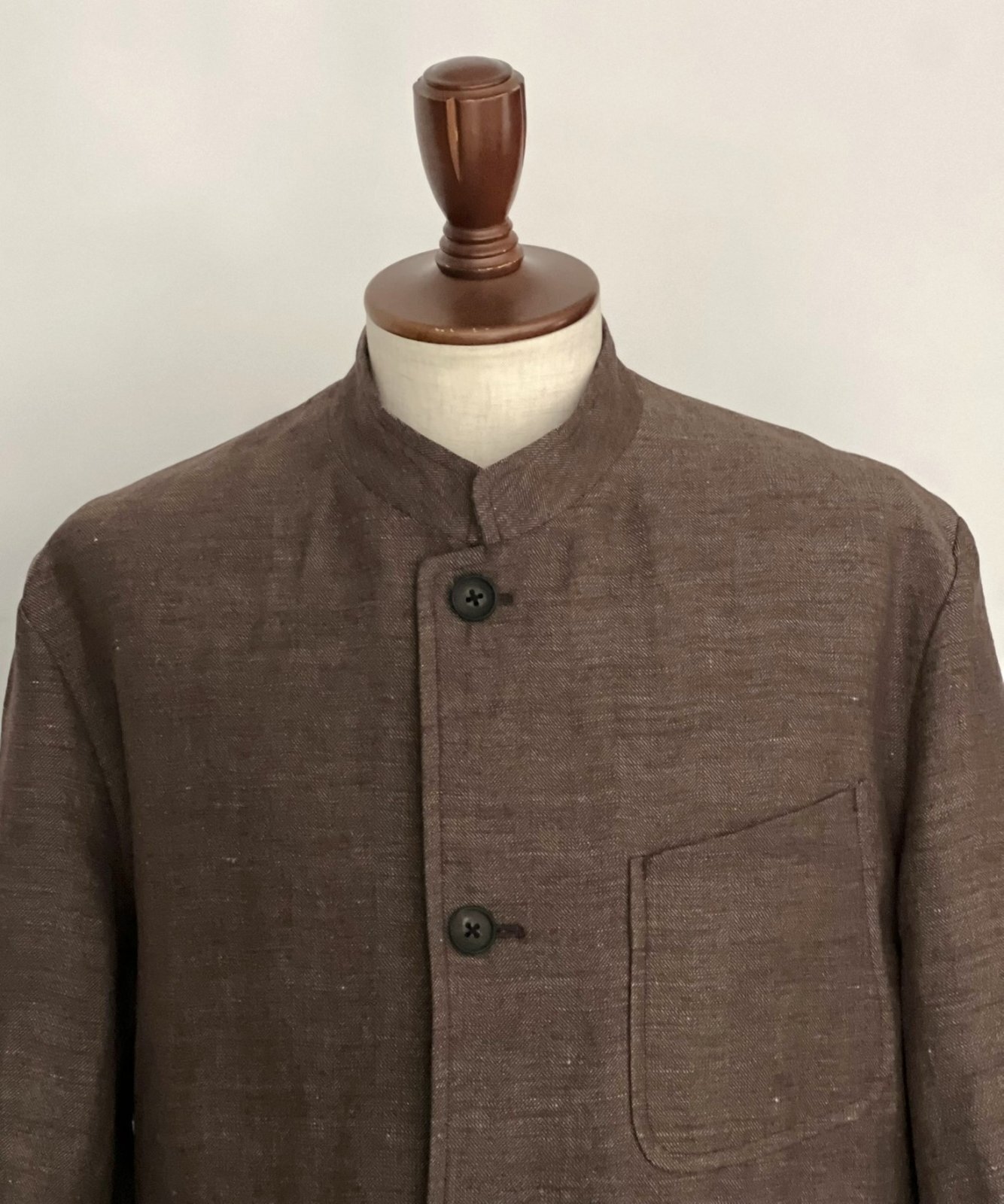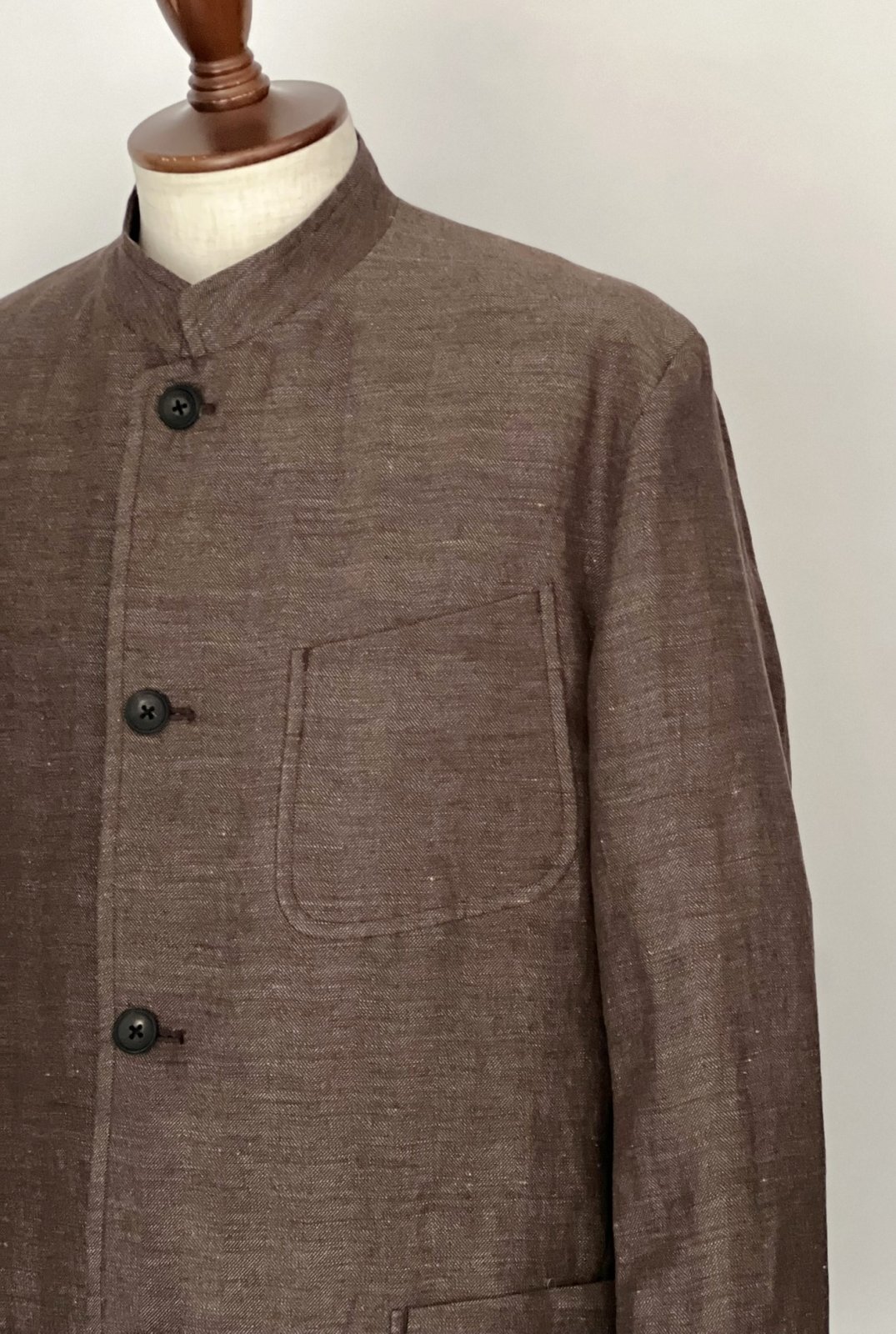 ハバーサック アタイアよりコットンリネンのヘリンボーン生地で仕立てたマオカラージャケット。